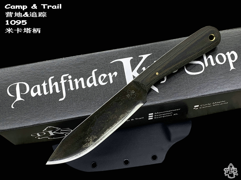 美国PKS(Pathfinder Knife Shop)Camp & Trail 营地&追踪 1095高碳钢锻打 斯堪刃 米卡塔柄 生存刀