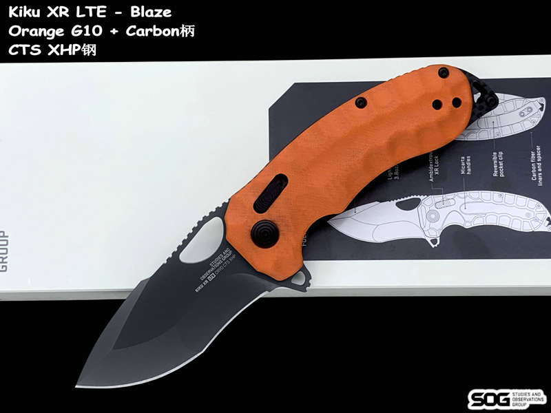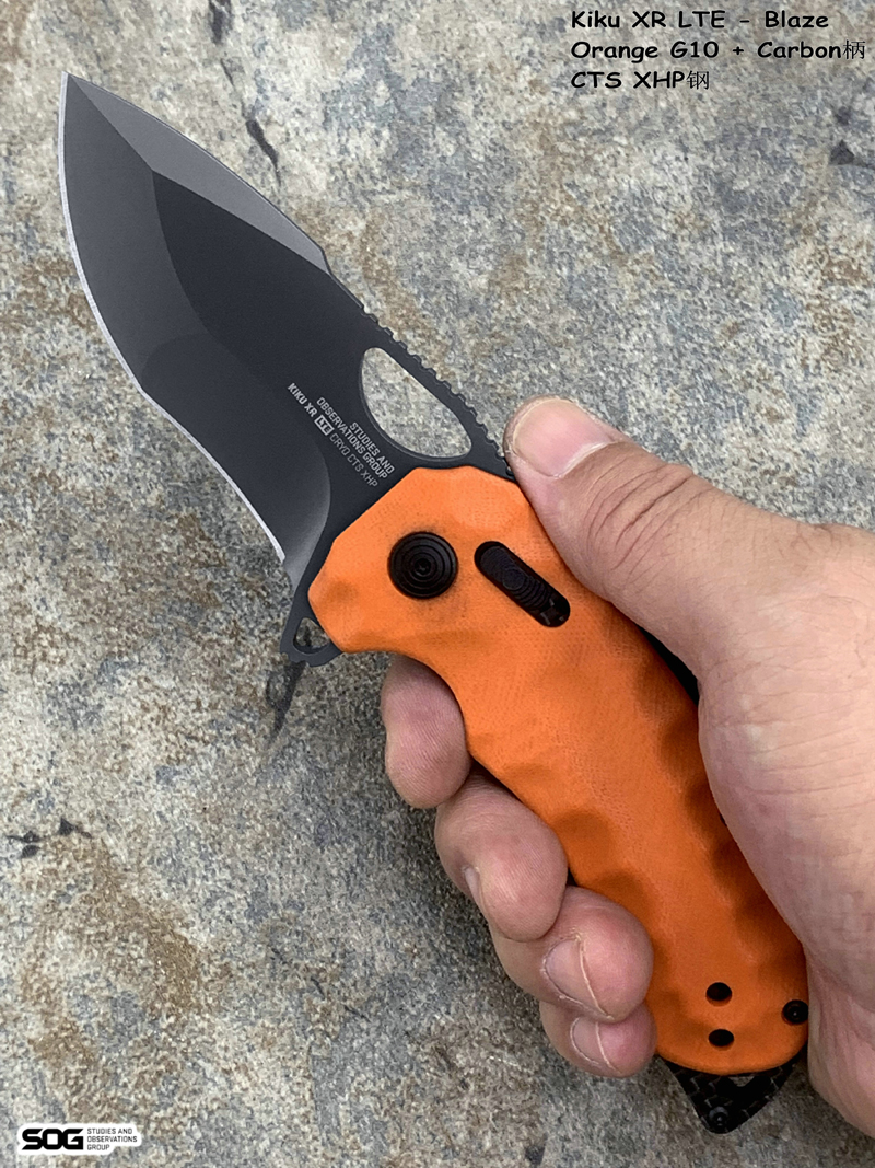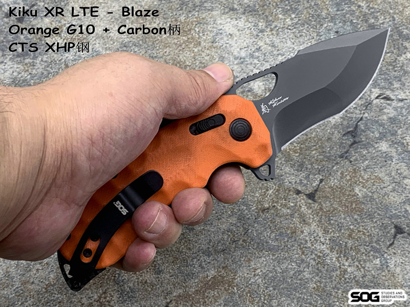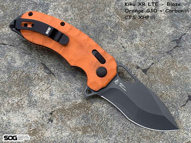 SOG Kiku XR LTE - Blaze 松田菊男合作 CTS XHP刃 橘色G10 + 碳纤维 鱼鳍快开轻量版战术折刀