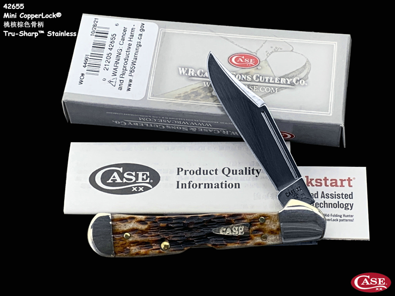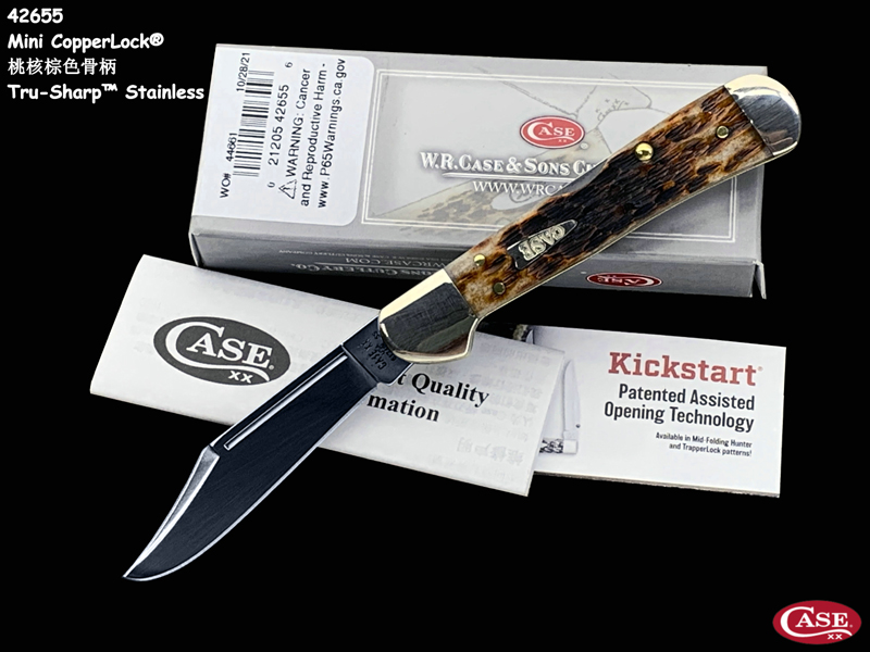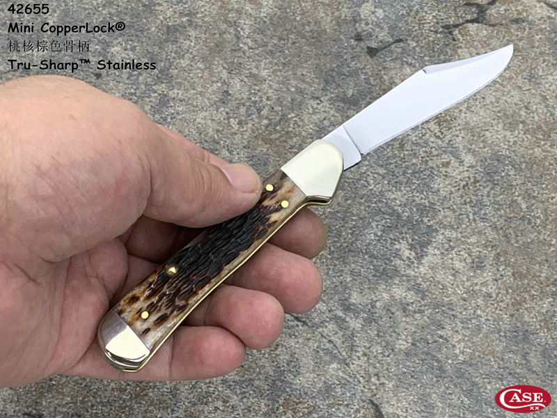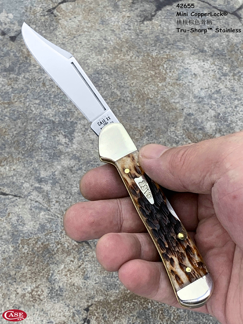 CASE 42655 Mini CopperLock® Tru-Sharp™ Stainless钢 桃核棕色骨柄 绅士折刀(现货)