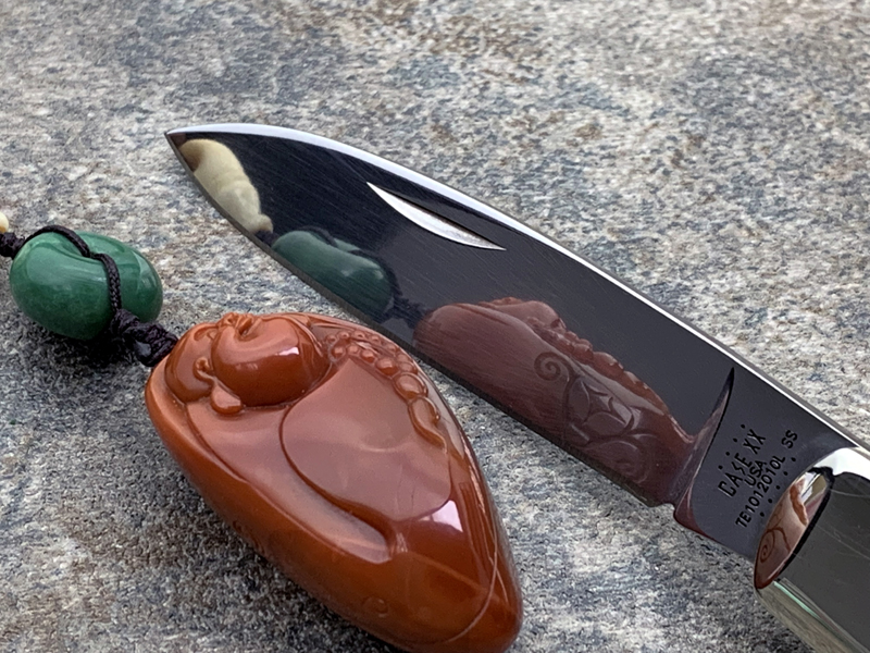 CASE 15034 U.S. Army Embellished Smooth Natural Bone Trapper 天然骨柄美国陆军图案 绅士口袋刀(现货)