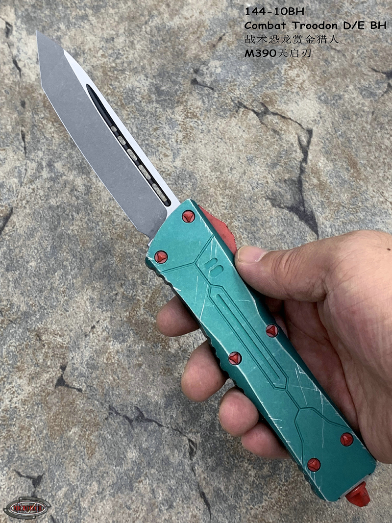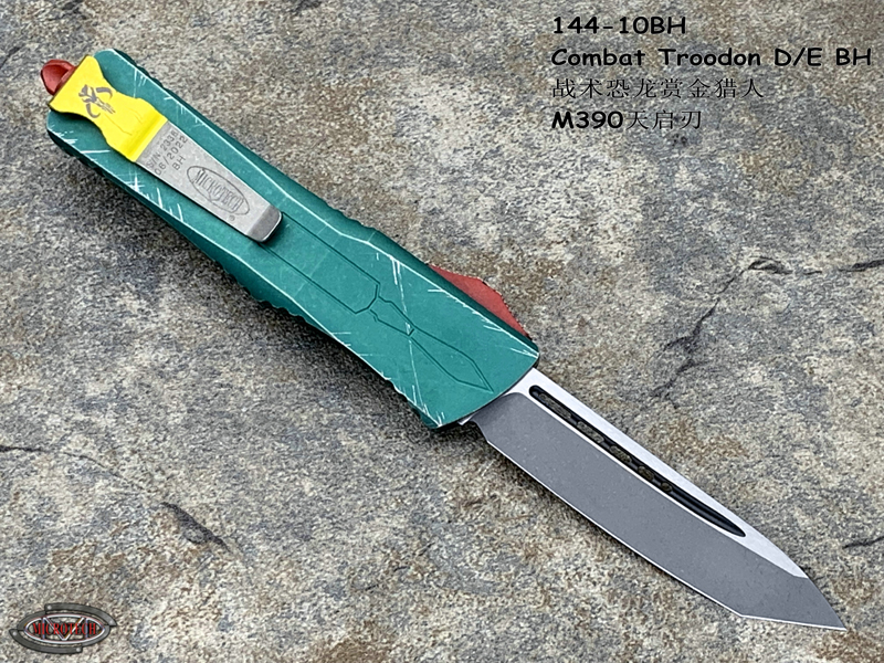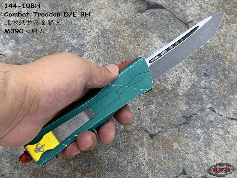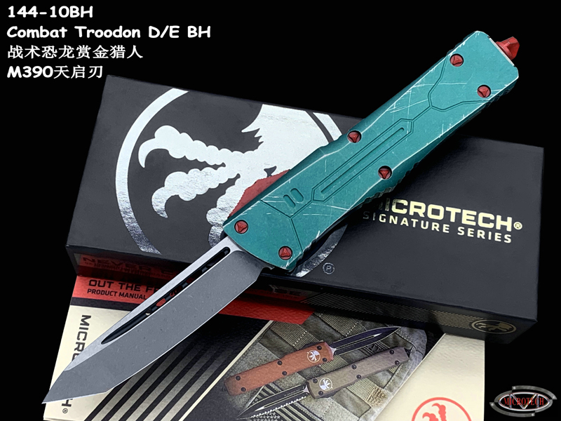 Microtech 微技术 144-10BH Combat Troodon D/E BH 战术恐龙赏金猎人系列 M390钢天启刃 绿色战损柄 Tanto全刃战术直跳(现货)
