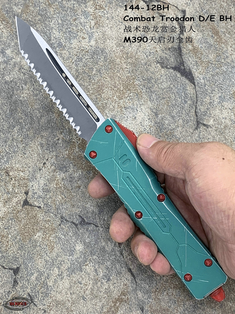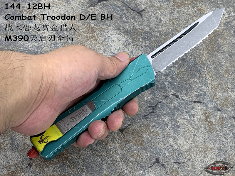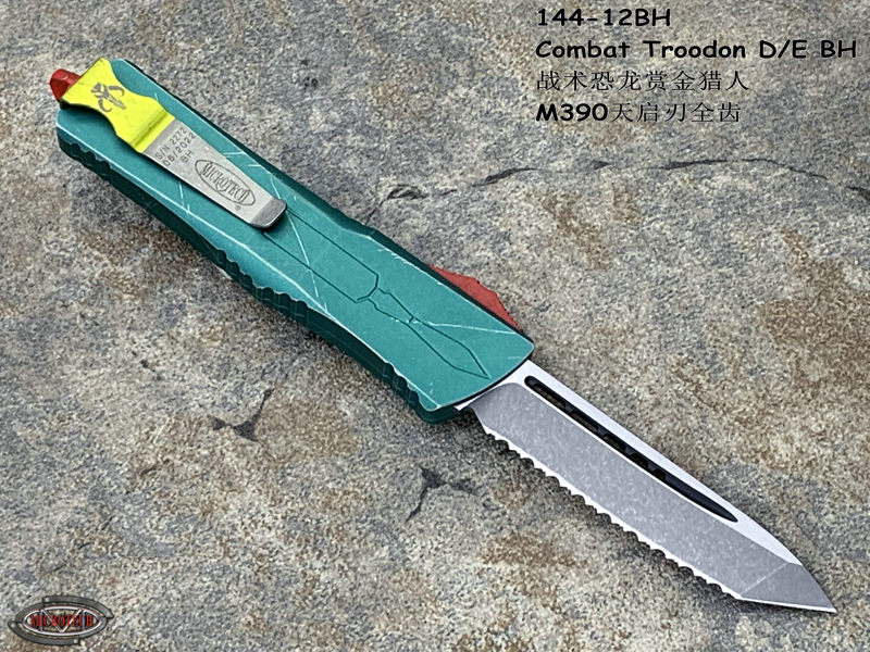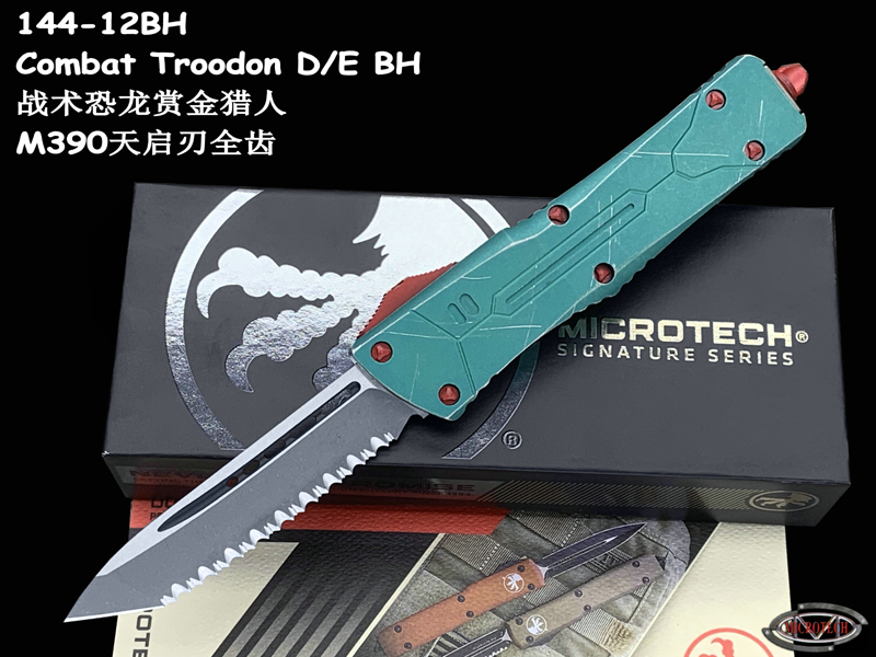 Microtech 微技术 144-12BH Combat Troodon D/E BH 战术恐龙赏金猎人系列 M390钢天启刃 绿色战损柄 Tanto全齿战术直跳(现货)