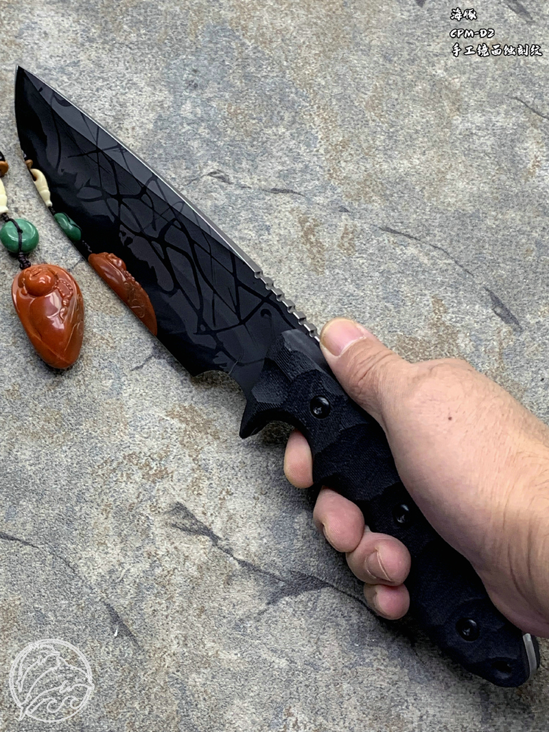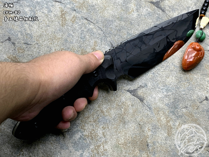 Fornax 华诺手工 Dolphin 海豚 CPM-D2刃材手工镜面蚀刻纹 G10柄 战术直刀(暂无现货)