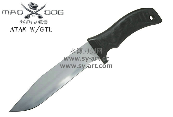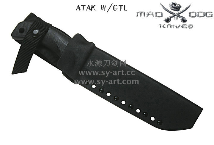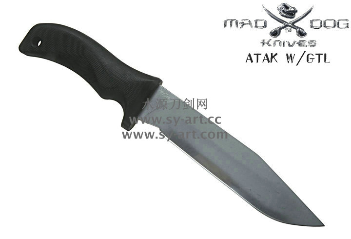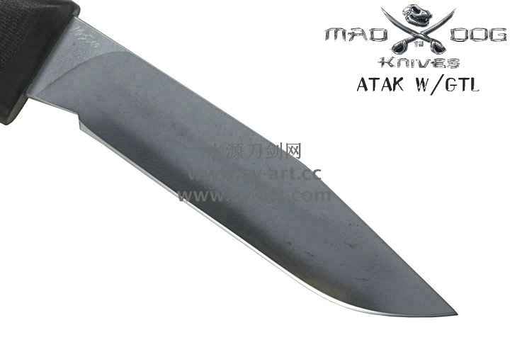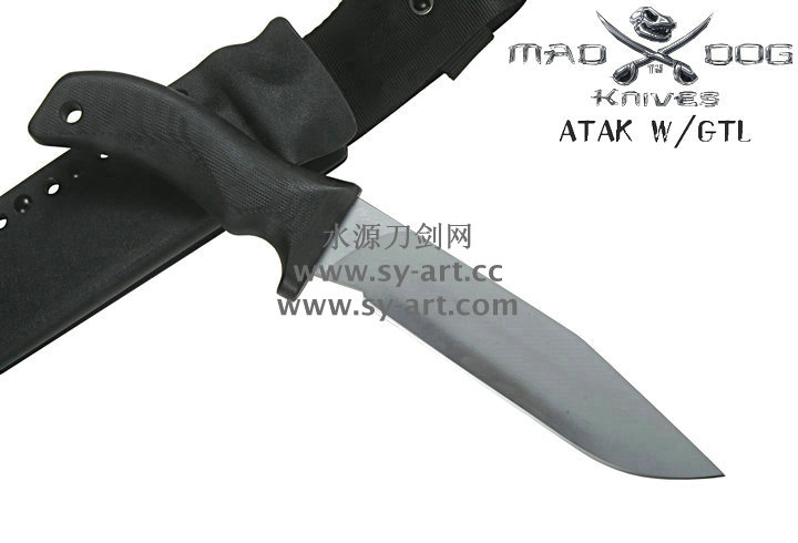 Mad Dog ATAK 疯狗——高级战术突击刃 除了完美之外,实在难以找到另一个词汇来形容Mad Dog Knives刃具。而ATAK更可说是Mad Dog Knives的成名刃。在1992年由西岸海豹部队所做的残酷测试中,ATAK是唯一一把通过测试的刃,测试的内容包括将刃夹在两片木片中,由体重约100公斤的海豹队员握住刃柄来做引体向上的动作,结果ATAK毫发无伤。ATAK是顶级藏家的选择,由于收藏者众,所以千金难求。