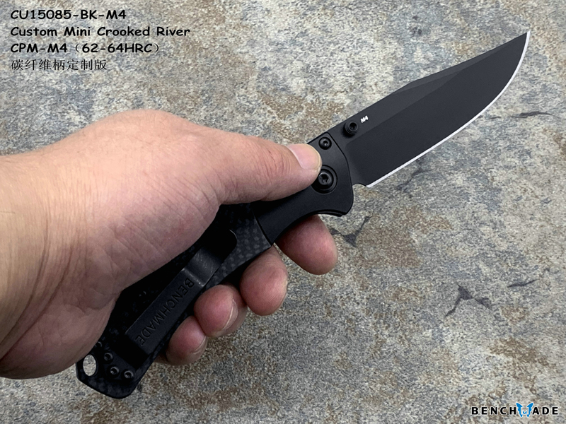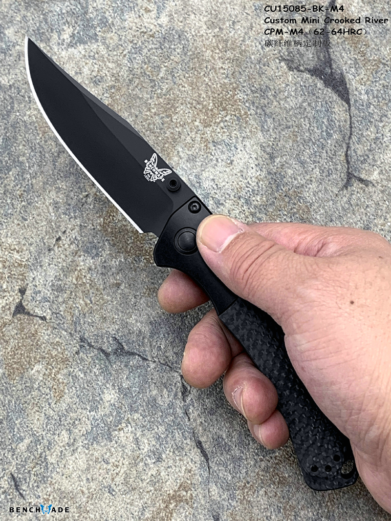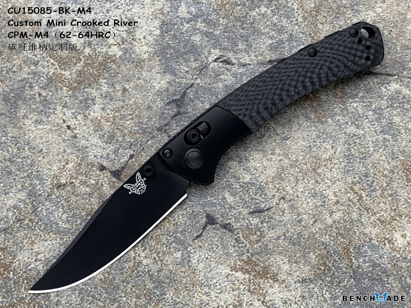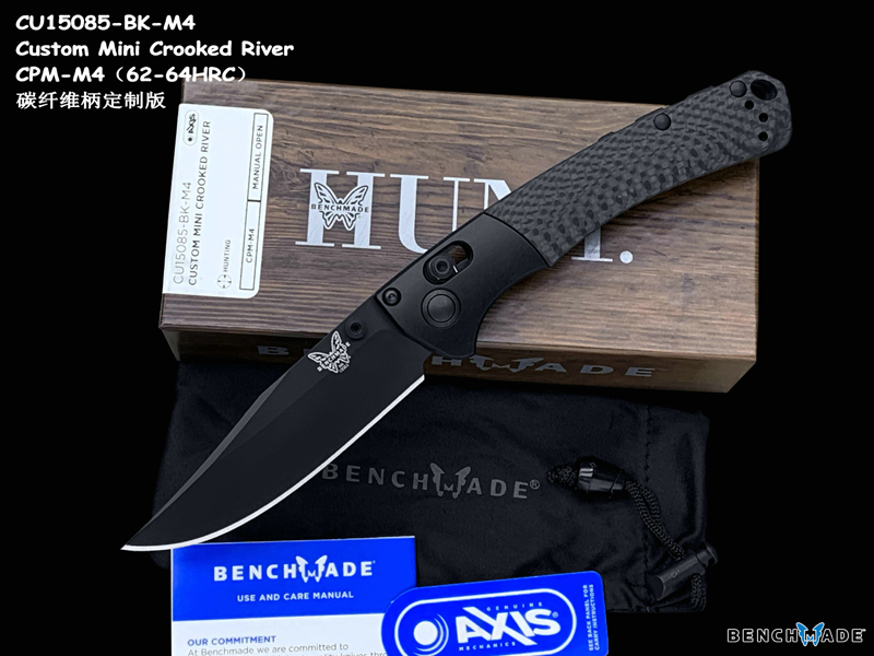 Benchmade 蝴蝶CU15085-BK-M4 Custom Mini Crooked River CPM-M4钢 碳纤维柄定制版狩猎折刀(现货)