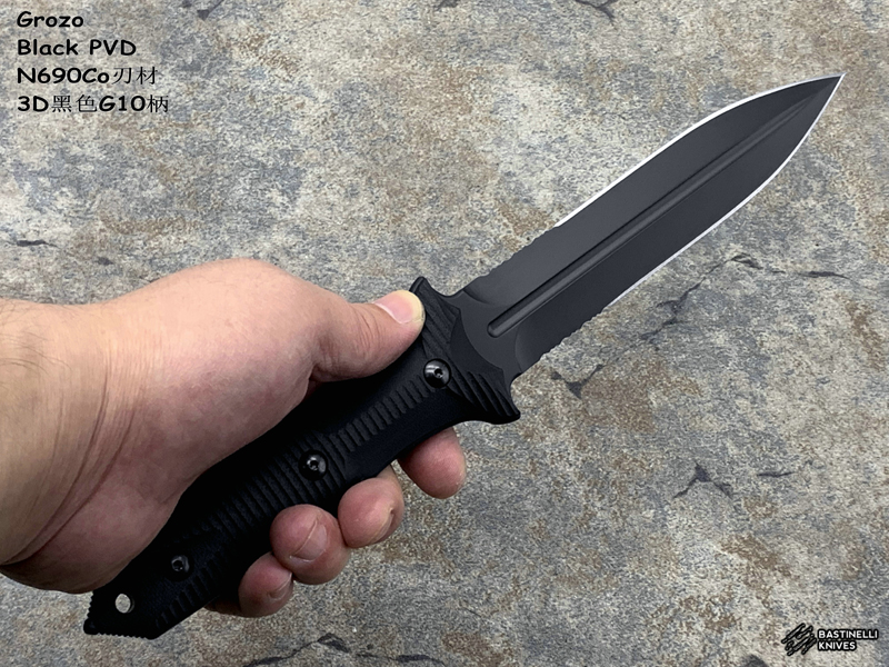 Bastinelli 巴斯蒂内利 Grozo Black PVD N690Co刃材 3D黑色G10柄 双锋半齿战术直刀