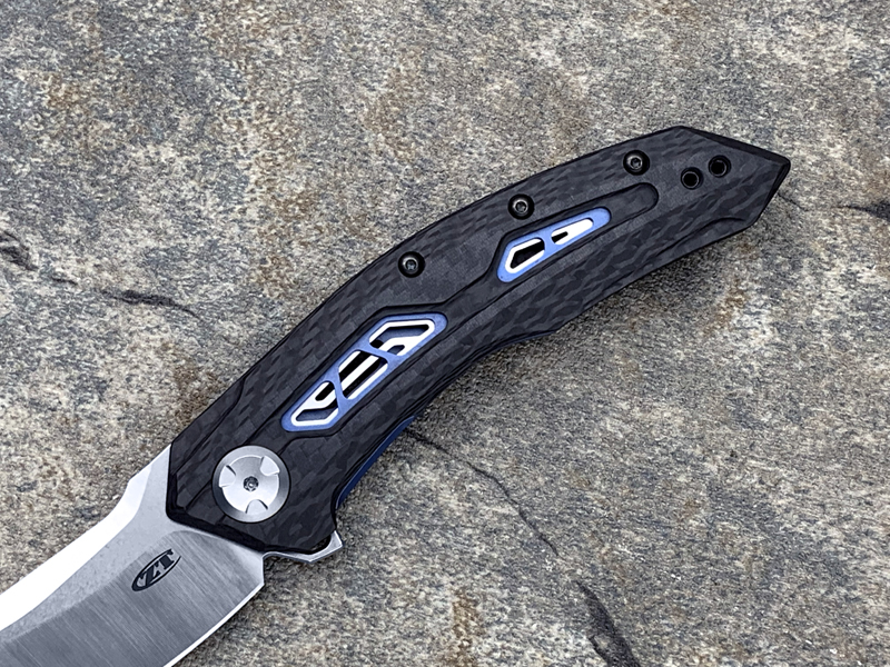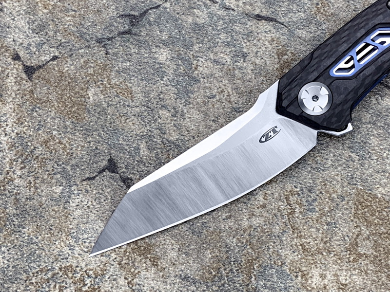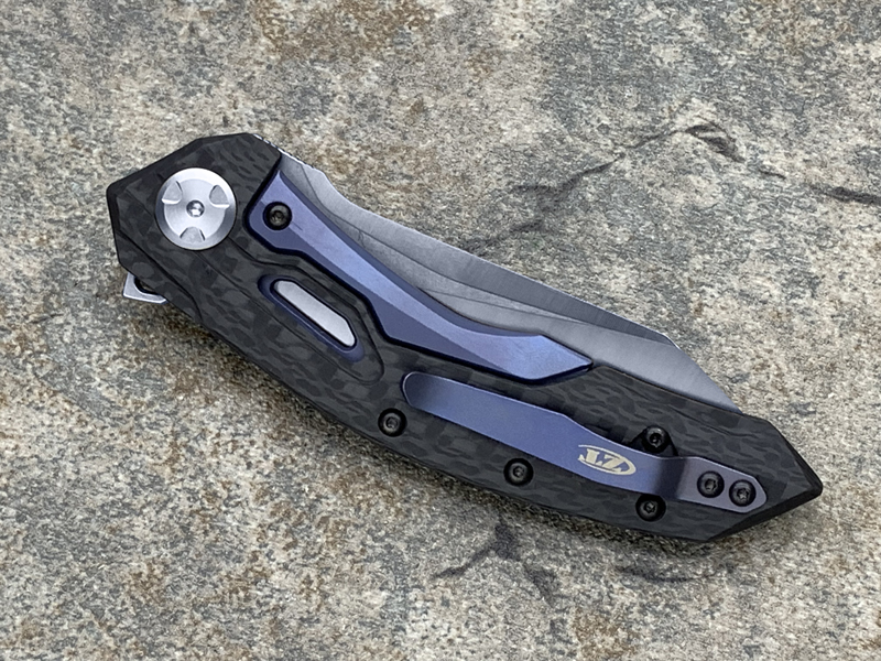 ZT原创作品0762提供了顶级的ZT体验。它的反tanto刀片和碳纤维手柄提供了终极中型EDC折刀。使用ZT调谐止动系统(TDS™)可靠地打开0762,即使紧压锁片也可以很轻松的开刀。钛合金框架锁固定刀片到位,而不牺牲碳纤维的轻量化优势。双色CPM 20CV刀片赏心悦目,在工作任务中同样有用。0762突出了一系列美学细节,包括匹配的蓝色阳极化硬件和光滑的手柄窗,展示出了细腻的拉丝刃面。