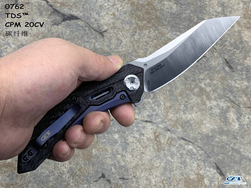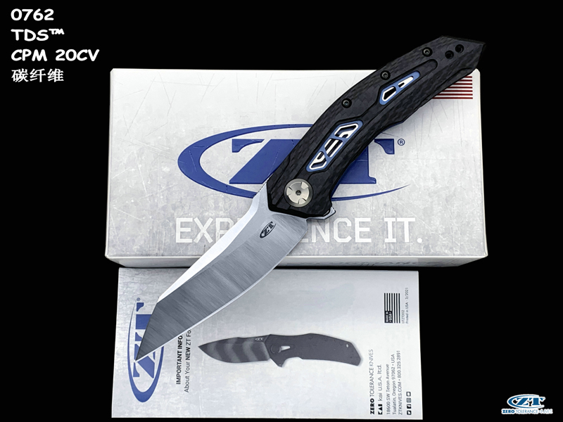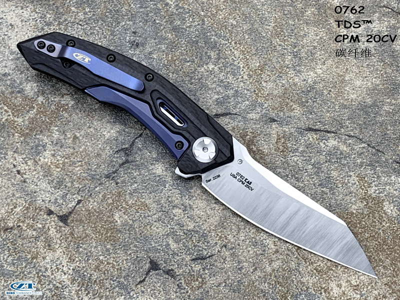ZT 零误差 0762 TDS调谐止动系统 碳纤维柄 鱼鳍快开 CPM 20CV钢 反Tanto EDC战术折刀(现货)