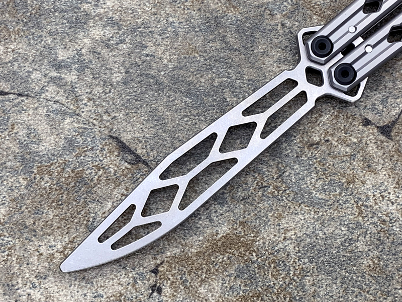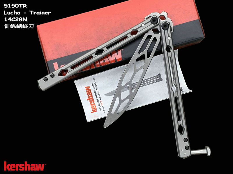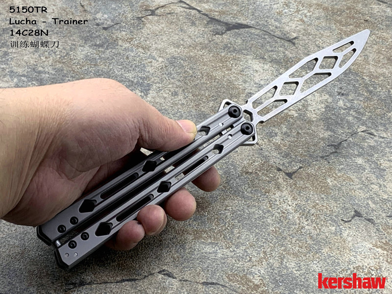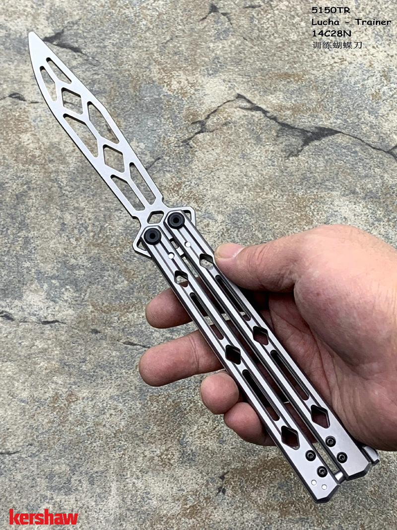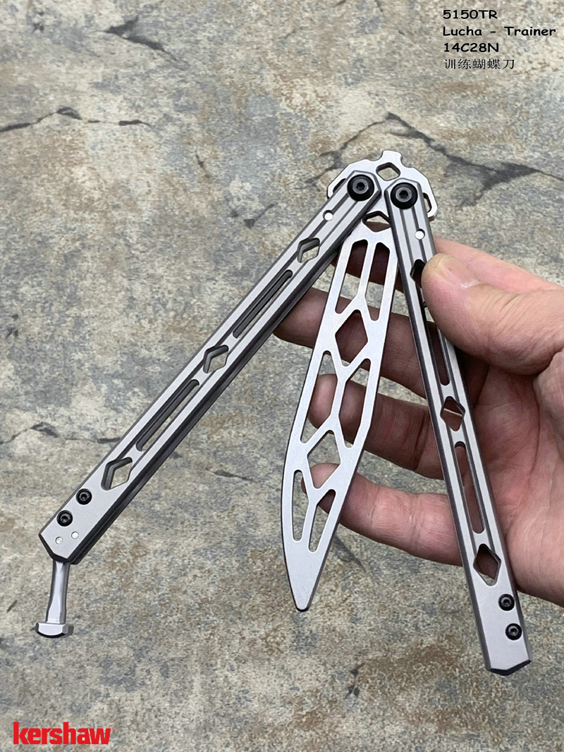 全长:258mm 刃长:115mm 刃厚:4mm 刃宽:22mm 刃材:14C28N 硬度:60HRC 闭合:150.5mm 产地:美国 重量:176g 翻转蝴蝶刀既有趣又有益,但可能有点吓人。这就是 Lucha – Trainer 的用武之地。圆形尖端和钝边消除了表演技巧时意外割伤的风险。除此之外,这仍然是美国制造的高品质 Lucha。训练版旨在尽可能接近原始 Lucha。例如,刀片逐渐变细,因此顶部有更多的重量可以平稳地摆动。 Lucha - Trainer 采用双 KVT 滚珠轴承刀轴,操作更加简便。手柄有一个圆形斜面,因此可以毫不费力地在手中滚动。即使是闩锁也是圆形的,因此在您翻转时它永远不会卡住。闩锁还具有正向止动功能,因此它永远不会接触刀片。作为一种美学触感,Lucha – Trainer 在刀刃上设有菱形孔,与其余设计相呼应。初学者对训练版感觉更自在,专家正在练习顶级技巧,Lucha – Trainer 都是最安全的解决方案。