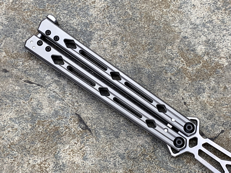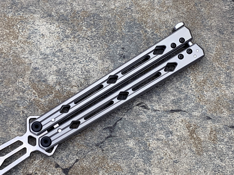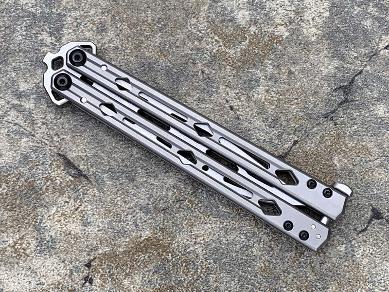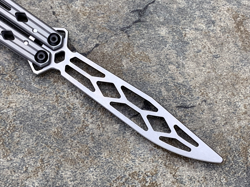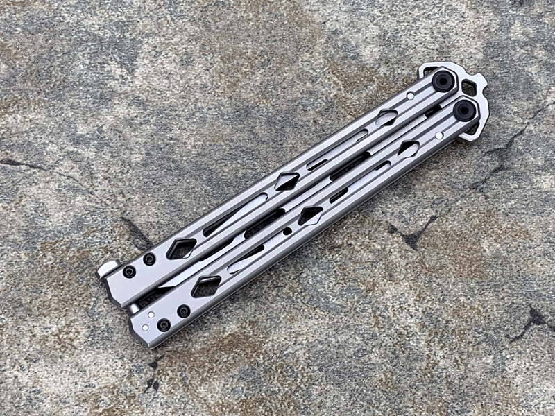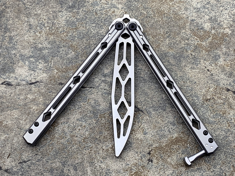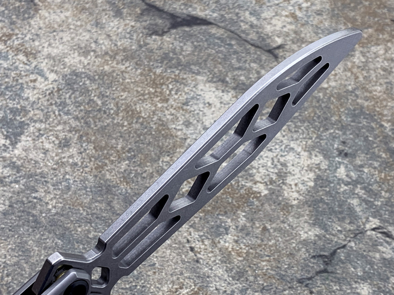 全长:258mm 刃长:115mm 刃厚:4mm 刃宽:22mm 刃材:14C28N 硬度:60HRC 闭合:150.5mm 产地:美国 重量:176g 翻转蝴蝶刀既有趣又有益,但可能有点吓人。这就是 Lucha – Trainer 的用武之地。圆形尖端和钝边消除了表演技巧时意外割伤的风险。除此之外,这仍然是美国制造的高品质 Lucha。训练版旨在尽可能接近原始 Lucha。例如,刀片逐渐变细,因此顶部有更多的重量可以平稳地摆动。 Lucha - Trainer 采用双 KVT 滚珠轴承刀轴,操作更加简便。手柄有一个圆形斜面,因此可以毫不费力地在手中滚动。即使是闩锁也是圆形的,因此在您翻转时它永远不会卡住。闩锁还具有正向止动功能,因此它永远不会接触刀片。作为一种美学触感,Lucha – Trainer 在刀刃上设有菱形孔,与其余设计相呼应。初学者对训练版感觉更自在,专家正在练习顶级技巧,Lucha – Trainer 都是最安全的解决方案。