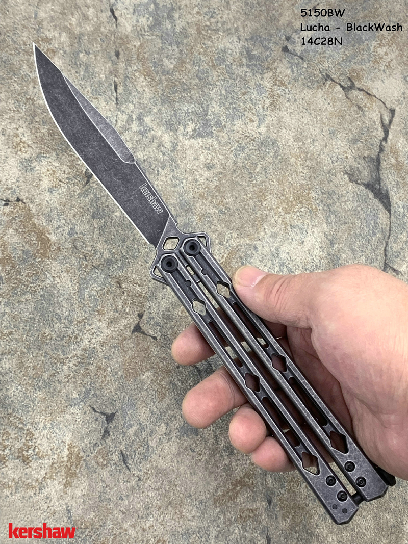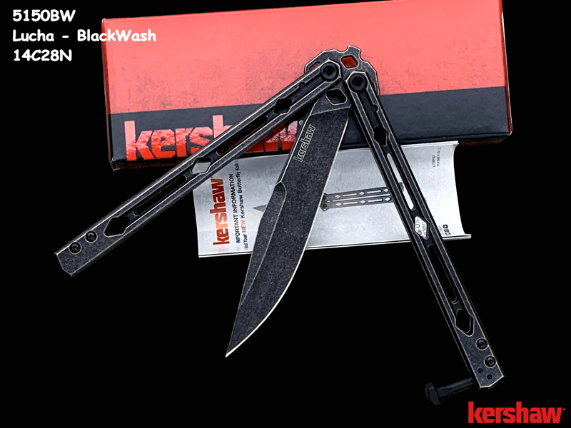 Kershaw 卡秀 5150BW Lucha - BlackWash butterfly 14C28N刃材 黑色沧桑石洗 双KVT滚珠轴承 高品质甩刀(现货)