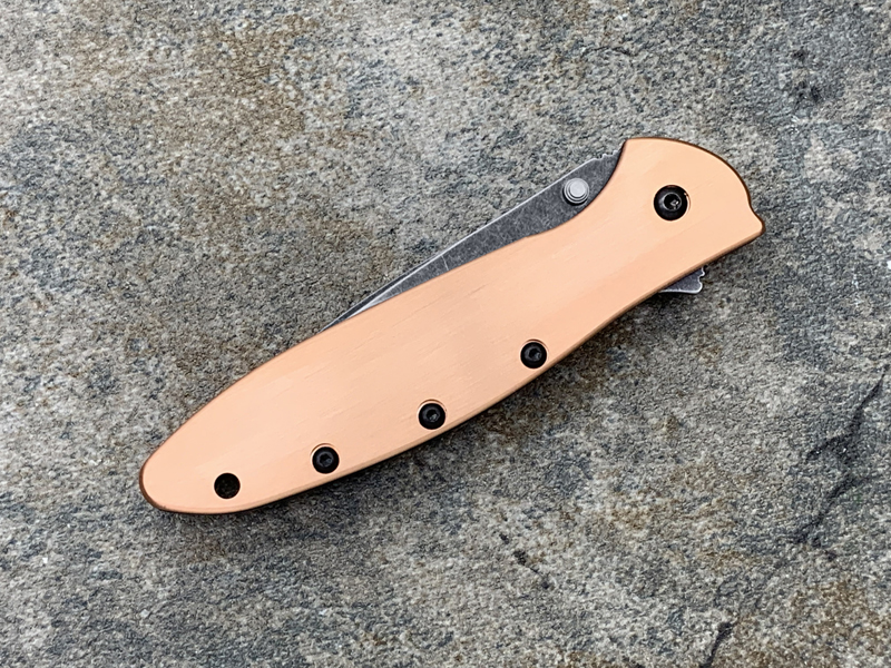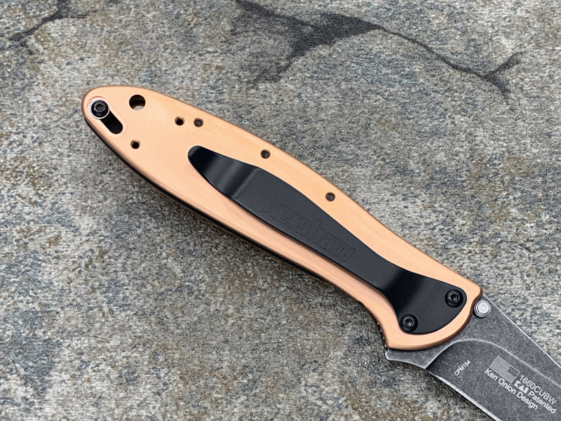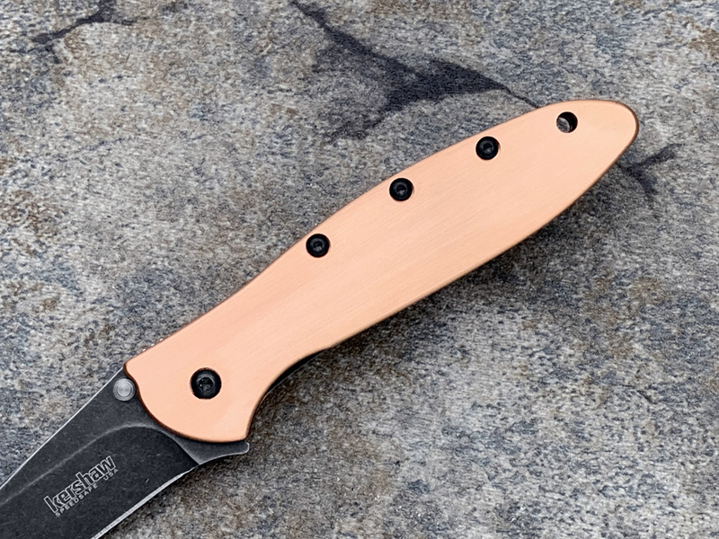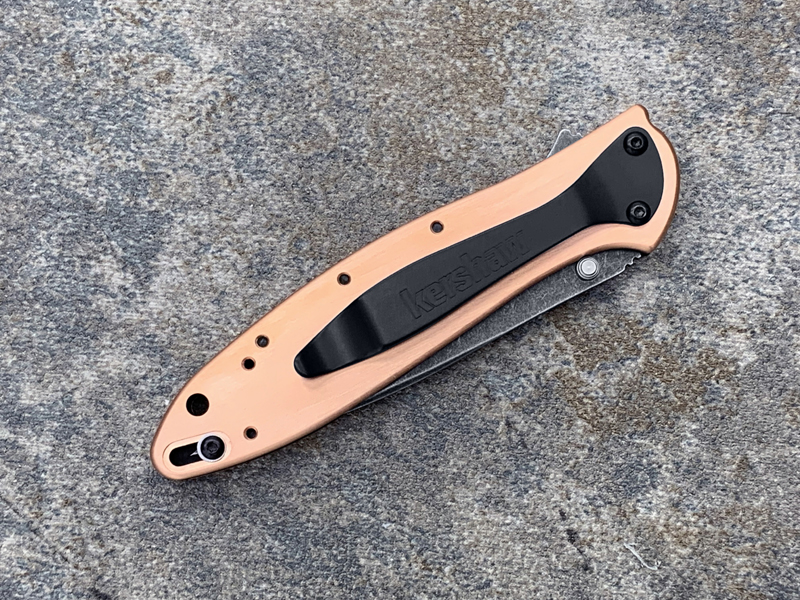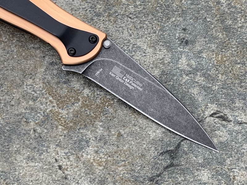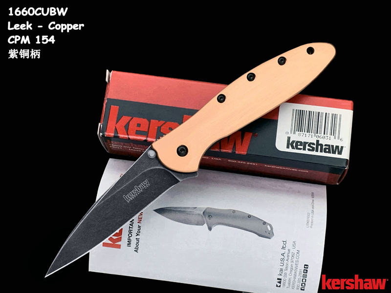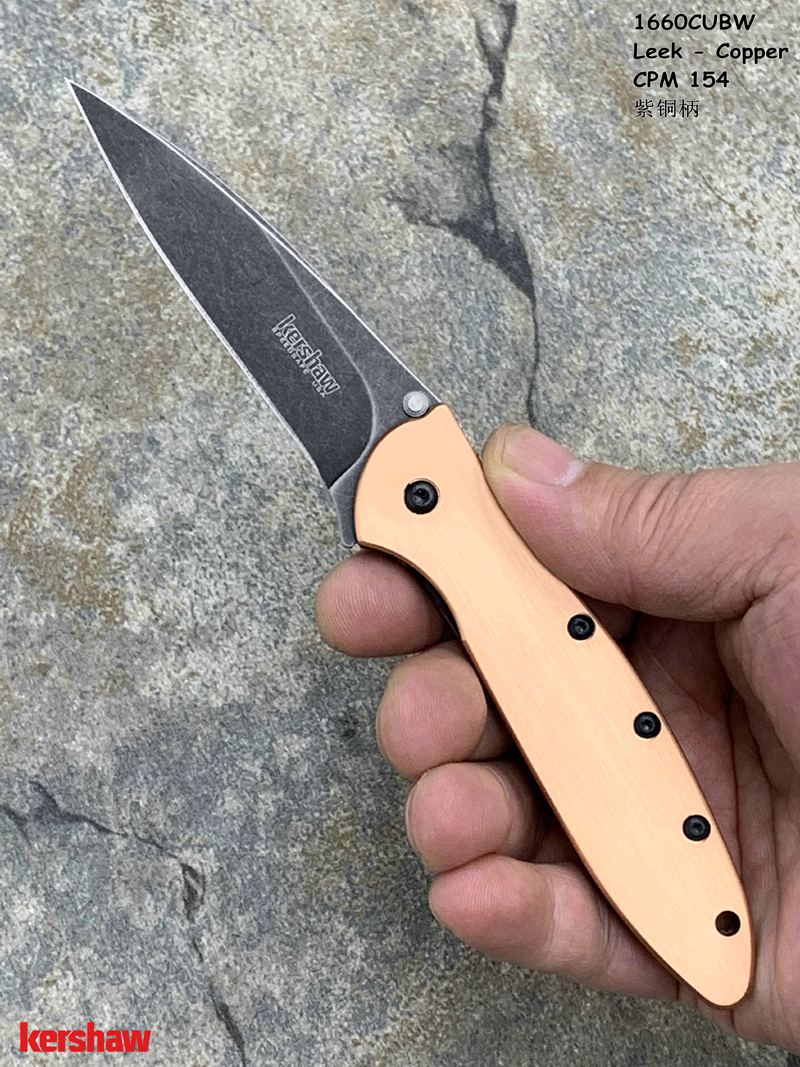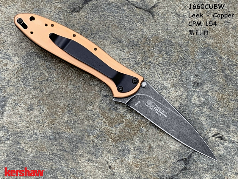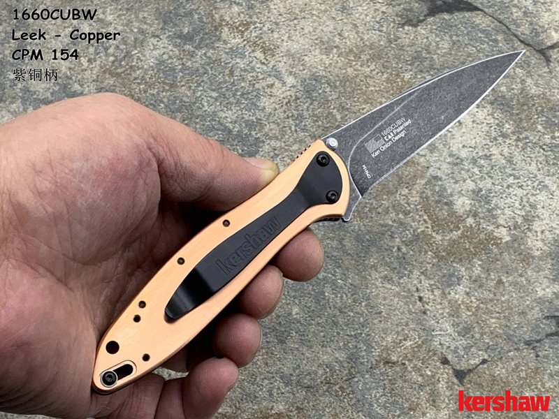 Kershaw卡秀 1660CUBW Leek - Copper Ken Onion设计 CPM154黑色沧桑石洗 紫铜柄 鱼鳍助力快开折刀(现货)