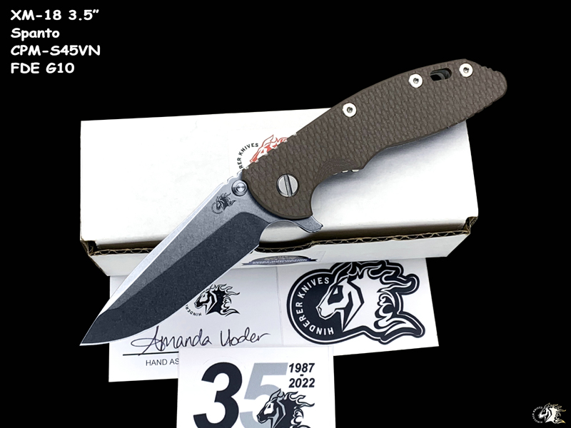 Hinderer Knives 辛德勒 XM-18 3.5吋 Spanto头 S45VN钢材 棕色G10石洗钛柄战术折叠刀