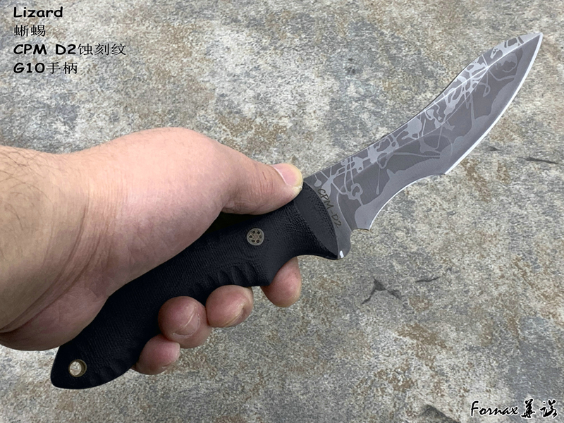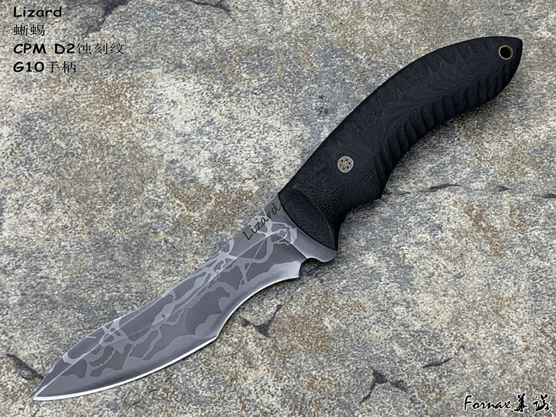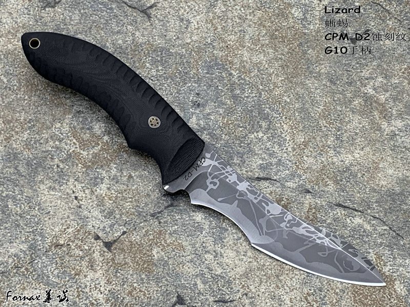Fornax 华诺手工 Lizard蜥蜴 CPM-D2刃材分段式打磨蚀刻纹 G10柄 一体龙骨战术直刀