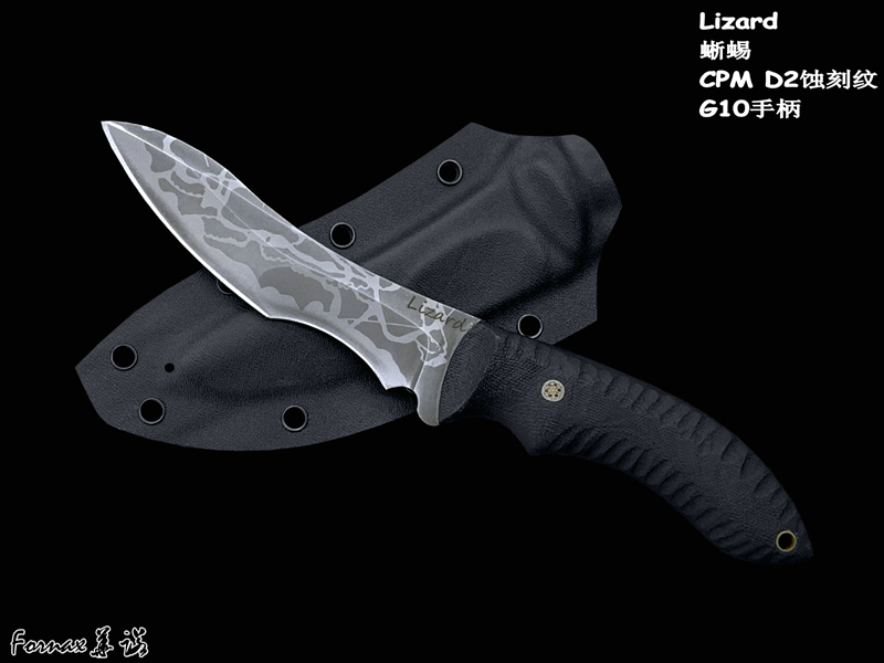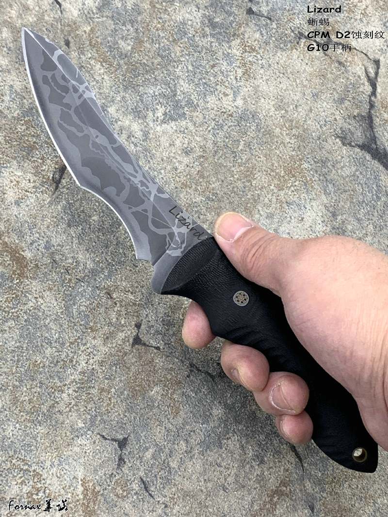 Fornax 华诺手工 Lizard蜥蜴 CPM-D2刃材分段式打磨蚀刻纹 G10柄 一体龙骨战术直刀(预定)