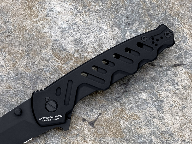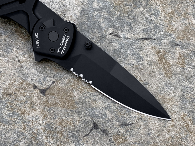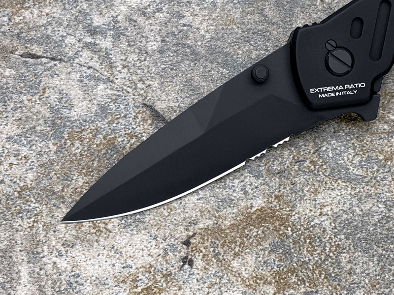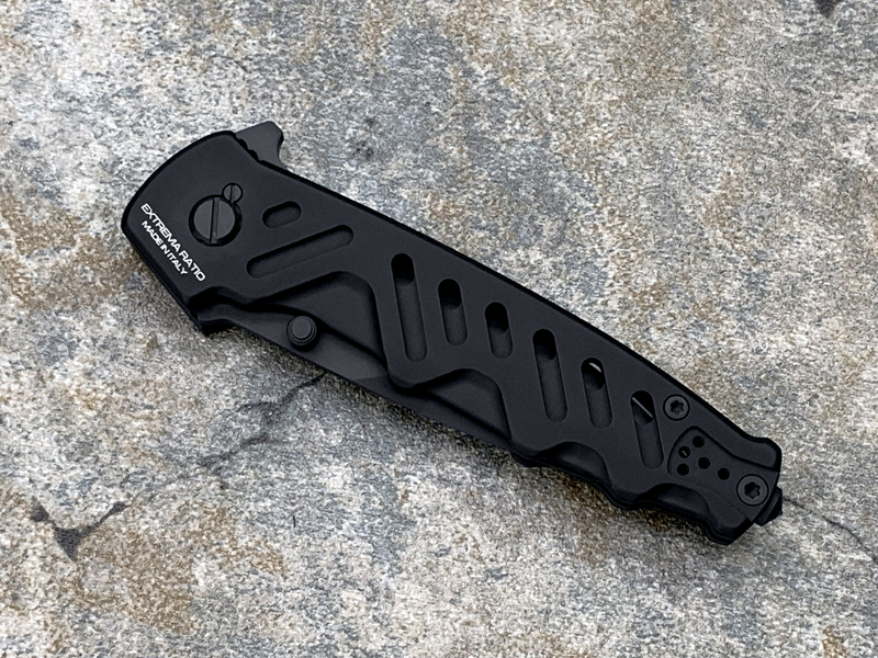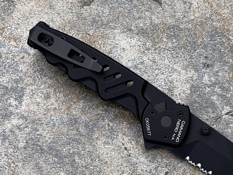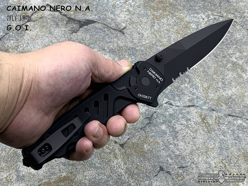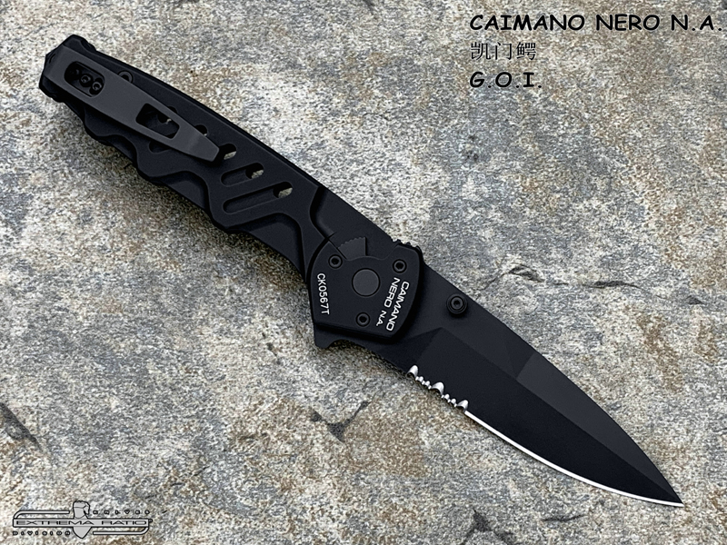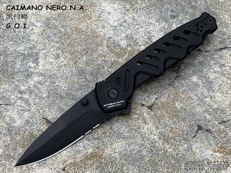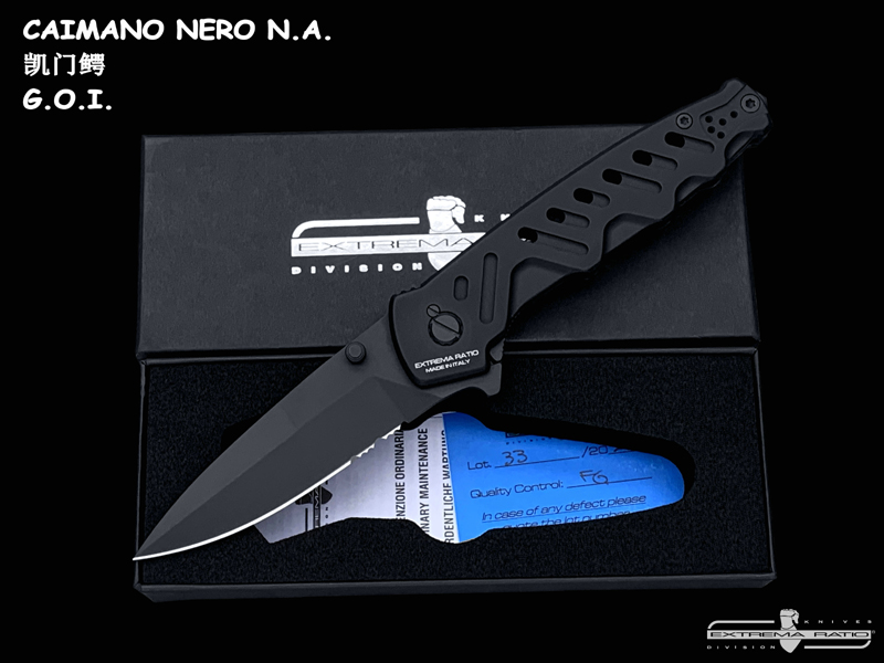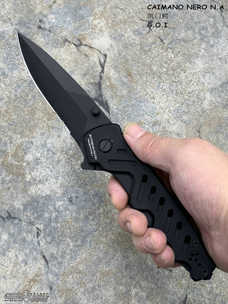 全长:231mm 刃长:94mm 刃材:N690 硬度:58HRC 刃厚:4mm 刃宽:29.3mm 闭合:137mm 产地:意大利 重量:185g 黑色凯门鳄是 Comsubin (意大利海军水下特种行动队)的官方供应商 Extrema Ratio 开发并交付给意大利海军的 G.O.I.(Operation Group Incursori) 的战术折叠刀。它的名字是为了纪念英雄 Caimani Neri del Piave、Regia Marina 的 Arditi 部门和其他自愿成员,他们在第一次世界大战期间游过 Piave 入侵敌方领土。它是一种带有 4 毫米“矛形”刀片的折叠刀,具有不对称形状开假刃以增加其穿透性。刀片上的齿让您可以切割电缆和高强度织物,同时保持锋利。这是一个结构强壮的中型折叠刀。高厚度的铝制手柄,手柄镂空,使刀具轻巧且平衡。手柄的末端部分让人想起慢速运行的鱼雷(S.L.C.)的螺旋桨/方向舵组的形状,用于提高操控性,以便从口袋中快速出刀。 DLC 涂层钛夹有三种安装方式。它的形状旨在最大限度地减少口袋外手柄的尺寸。即使在打开过程中发生意外撞击,自动刀片释放系统也能确保完全打开。除了硬质金属玻璃破碎器外,还有一个安全装置,当刀在打开状态穿刺时,防止解锁。