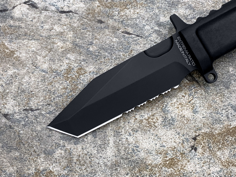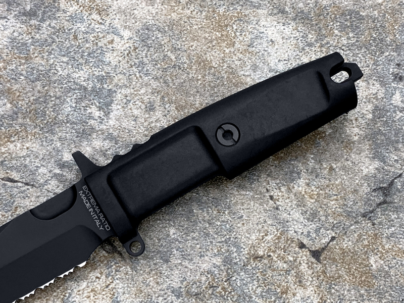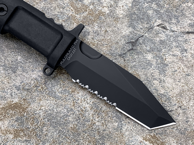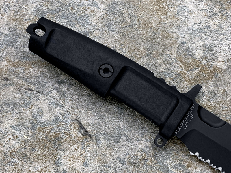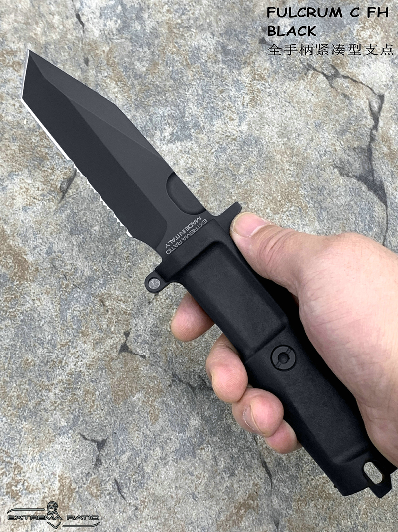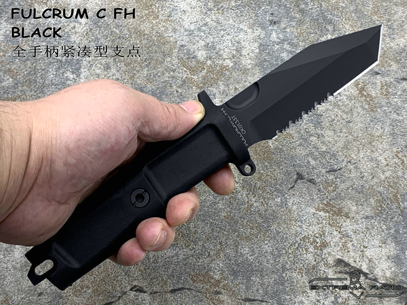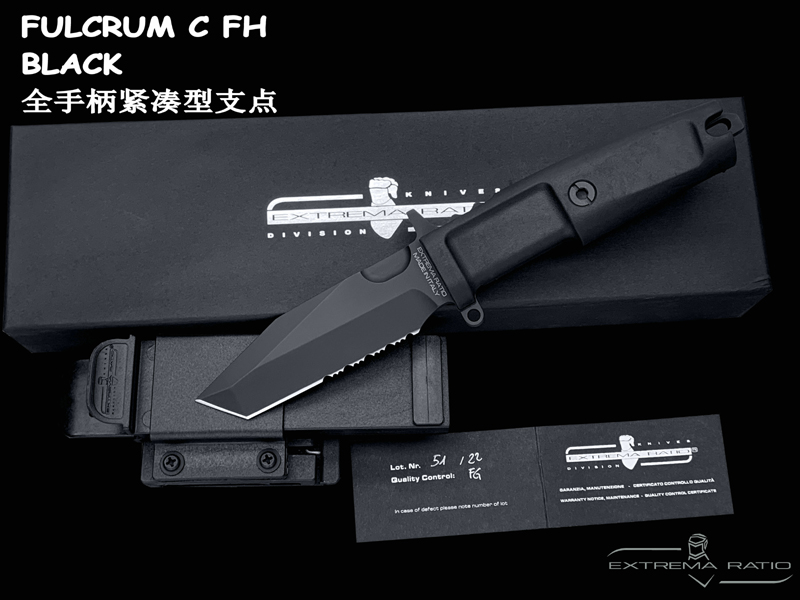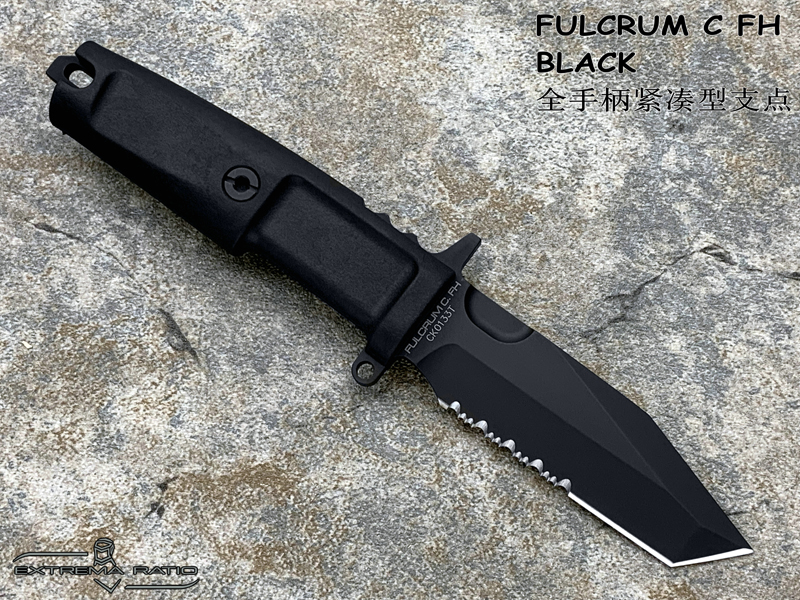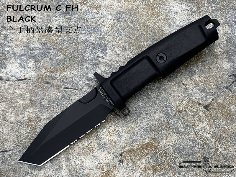 全长: 238mm 刃长: 93mm刃材: N690 硬度: 58HRC 表面: 钛氮涂层 刃厚: 6.3mm刃宽: 32mm 柄材: FORPRENE (北约军规) 重量: 258g 产地: 意大利 FULCRUM C是FURCRUM的紧凑型,保留了坚固耐用的所有特性,由于刀片(仅93 mm)和手柄的尺寸较小,因此易于携带和隐藏。ABS护套可水平、垂直或倾斜45°放置。刀鞘通过压力自动拔出和重新插入,这一细节使其成为一种直观和非常快速的工具,特别适合紧急使用和个人防御。FULCRUM C的原始版本具有紧凑的100mm手柄,而全手柄(FH)版本具有更舒适的127mm手柄。