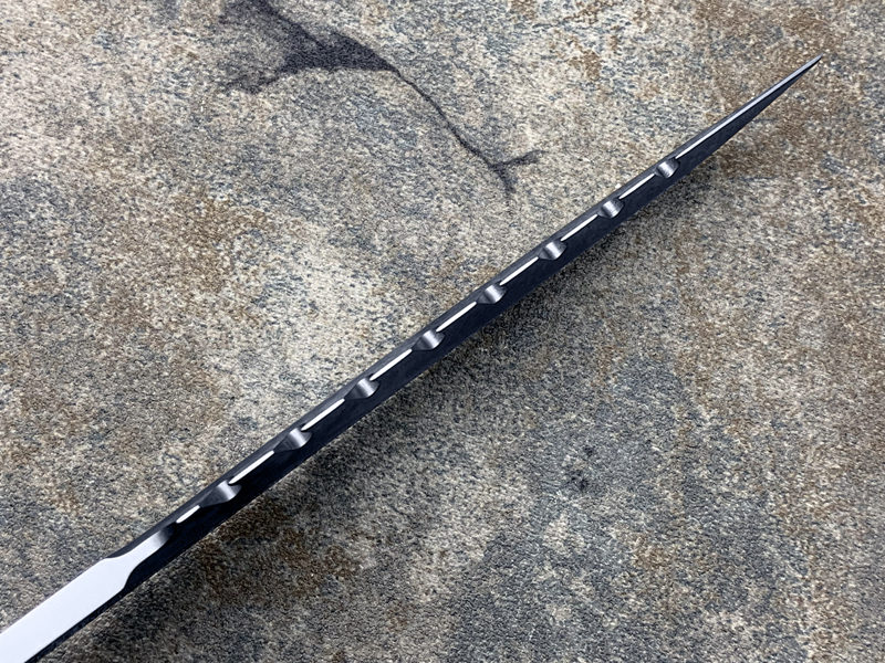 由B?hler N690制成的实心刀片厚度为6.3mm,矛尖轮廓经过修改。