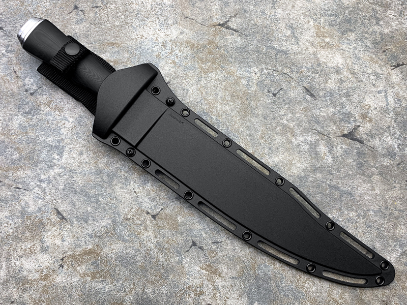 最好的材料和工艺使这样的性能成为可能。 刀片由4034SS钢制成。手柄在整体性能中也起着重要作用。 它有一个双层羽毛状护手、枕垫和尾铁由高度抛光的 300 系列不锈钢制成和一个华丽的黑色亚麻 Micarta 手柄。 它可以轻松适应各种抓握方法,同时也可以作为一种非常强大的冲击武器。