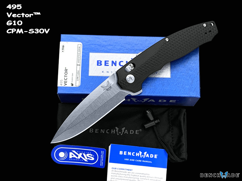 Benchmade 蝴蝶 495 Vector™ CPM-S30V钢 黑色G10柄鱼鳍助力快开折刀(现货)