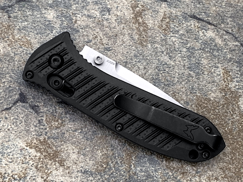 Benchmade 蝴蝶 9570BK MINI CLAYMORE 黑色Grivory手柄 CPM-D2钴黑刃全刃迷你战术侧跳(现货)