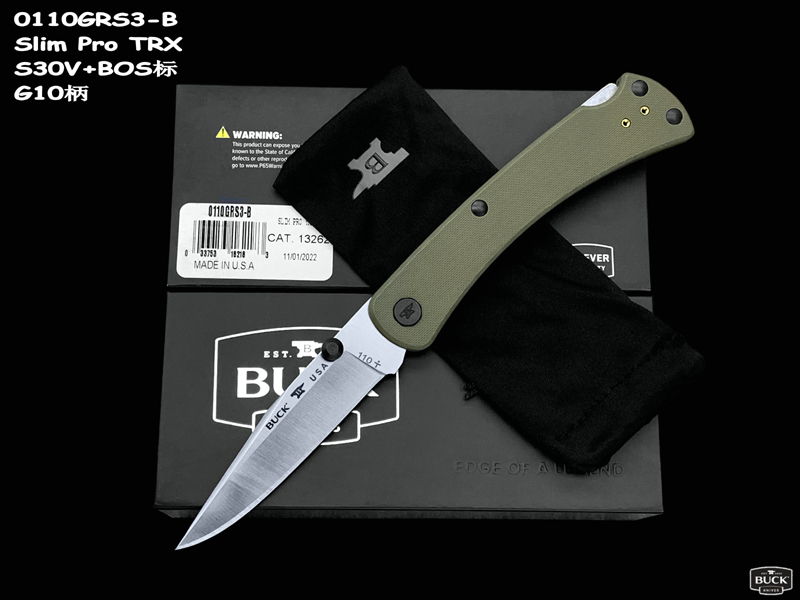 BUCK 巴克0110GRS3-B Slim Pro TRX S30V BOS标 绿色G10柄 修长猎人专业运动版折刀(现货)