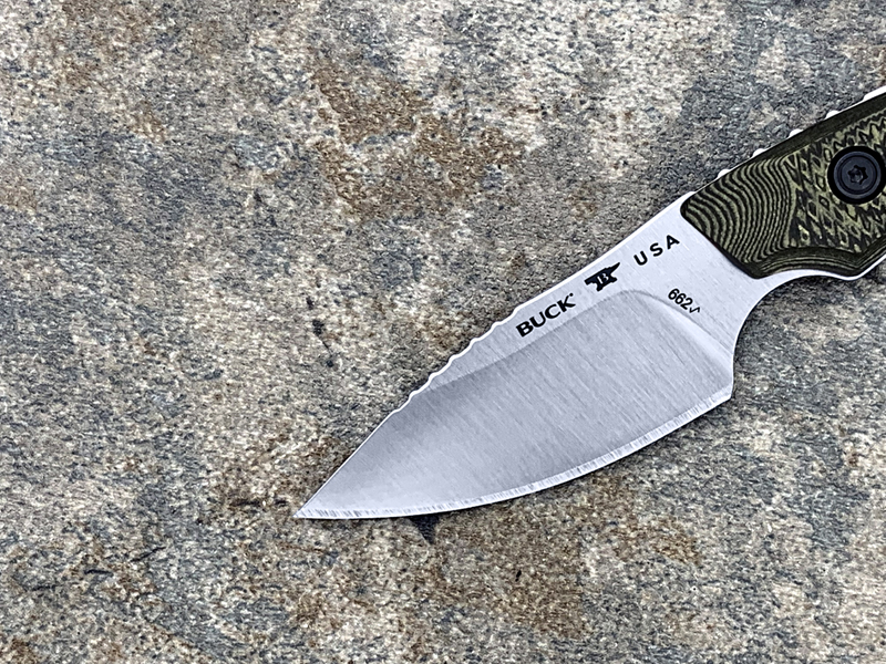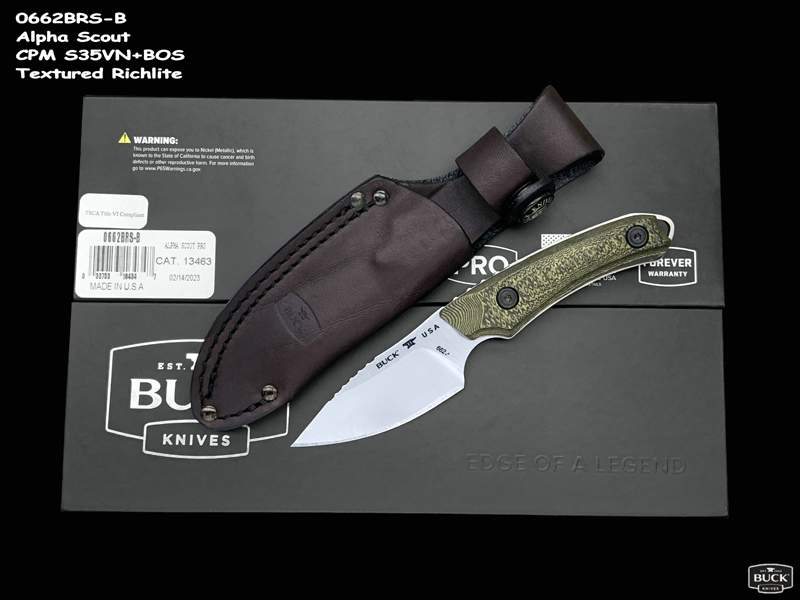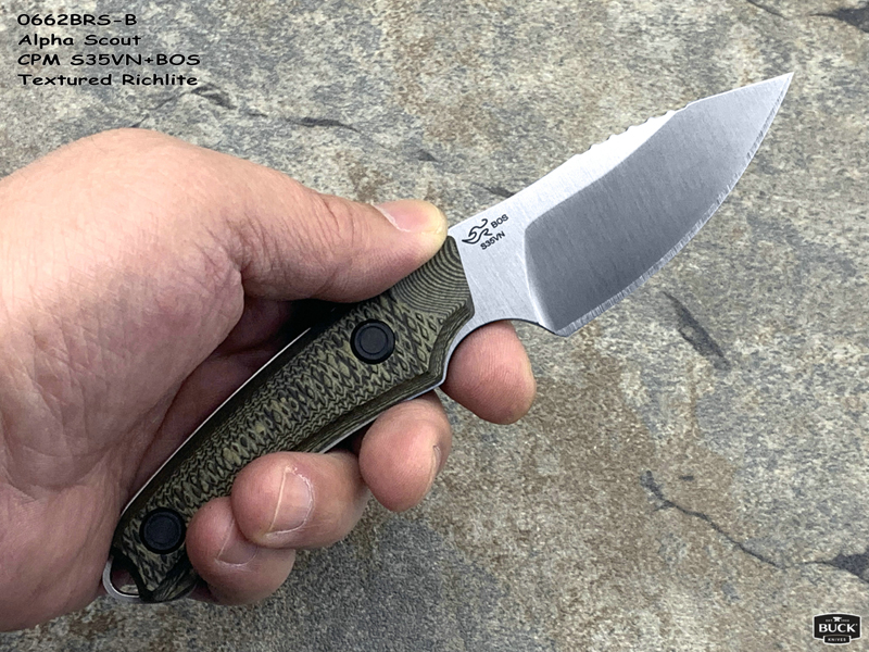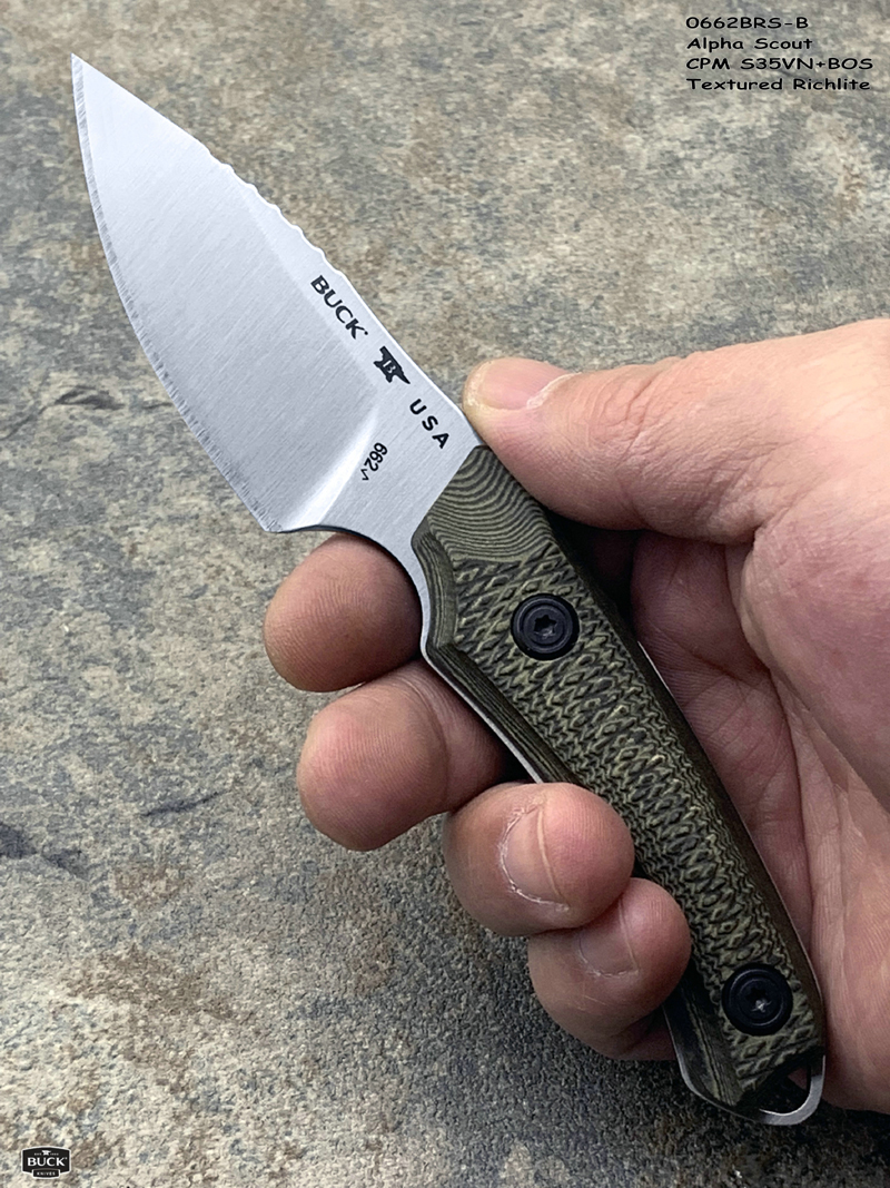 全长:160mm 刃长:67mm 刃厚:3.5mm 刃宽:28.5mm 刃材:CPM S35VN 硬度:60-61HRC 产地:美国 重量:77g 2023 年新款 Buck Alpha Scout,一把专为严酷的狩猎而打造的刀。Alpha Scout 是对大型猎物进行精细加工或处理白尾鱼或小型猎物的完美刀具。 S35VN 钢将在整个过程中保持锋利度,无需重新磨锐。大平磨增加了刀片的强度,使您可以放心地进行切割。在刀片上使用不同的手柄进行精细工作时,在刀片背部进行指槽可让您精准操控。专门设计的纹理手柄即使在潮湿条件下也能为您提供值得信赖的操控性。包括一个加固的皮革护套,可将您的刀挂在腰带上或安全地放在背包中。 Buck Alpha Scout是猎人的完美刀具,他们需要最大限度地利用他们的装备。