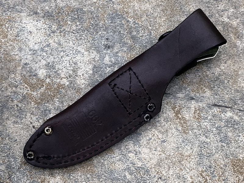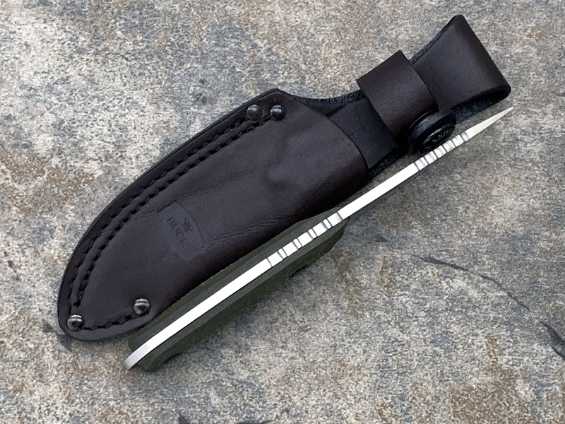. 67mm刃长 . 160mm 总长度 . 手工打磨的水滴头刀片,带有用于精准操控的背槽 . 3.5mm厚刀片 . 77g . 带纹理的 richlite提供出色的操控性 . 全龙骨增加强度 . S35VN钢刀片 . 美国制造的刀具 . 包括一个美国制造的棕色真皮护套