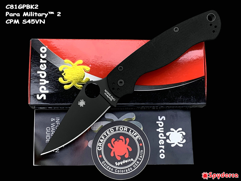 Spyderco 蜘蛛 C81GPBK2 Para Military™ 2 CPM S45VN钢黑色涂层 黑色G10柄 美国军用折刀(暂无现货)