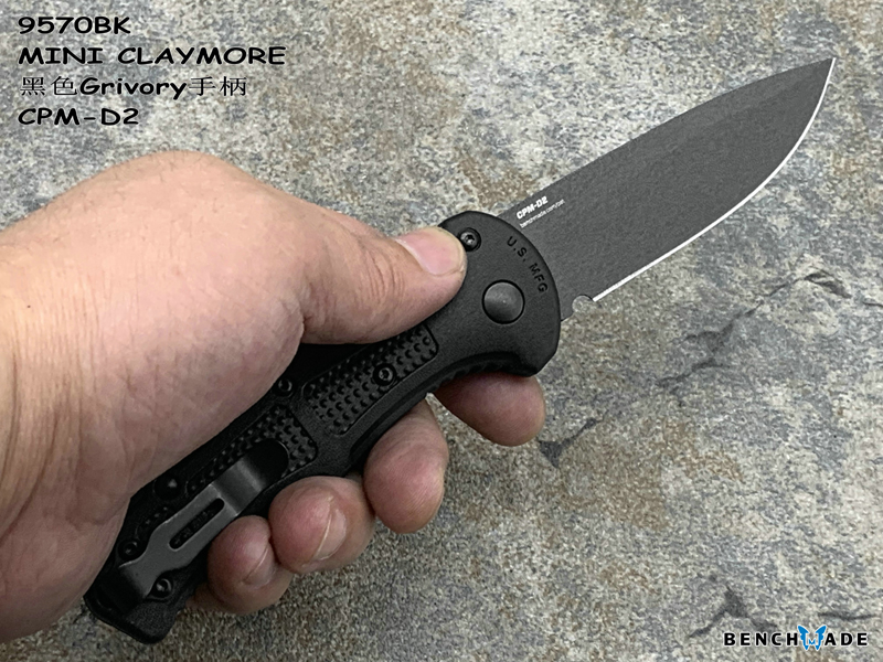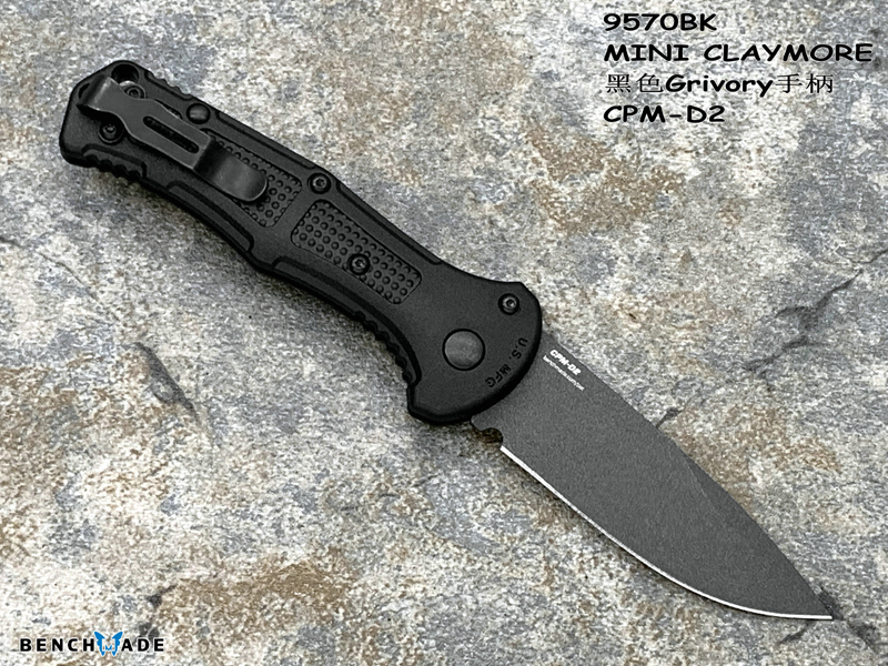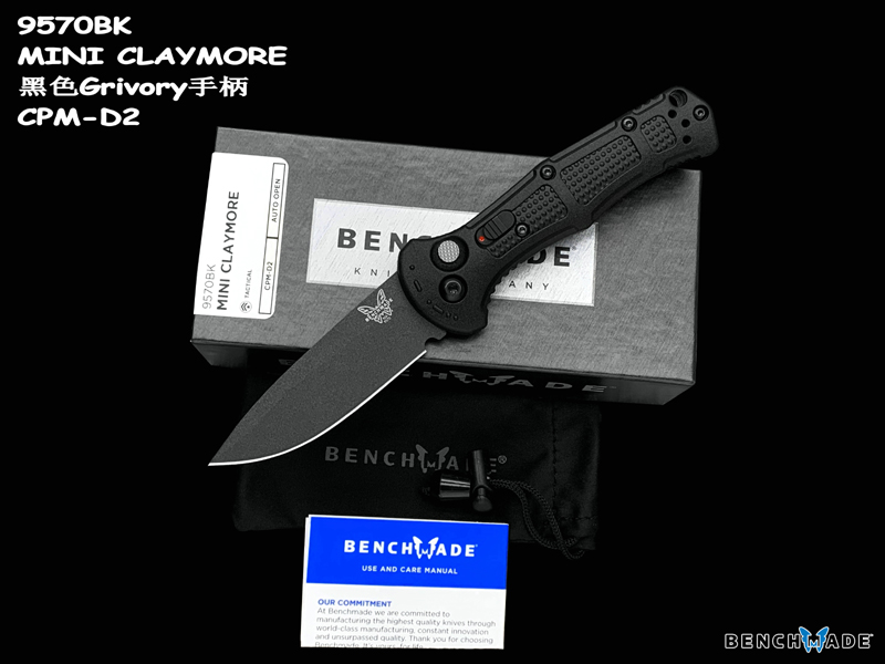 Benchmade 蝴蝶 9570BK MINI CLAYMORE 黑色Grivory手柄 CPM-D2钴黑刃全刃迷你战术侧跳