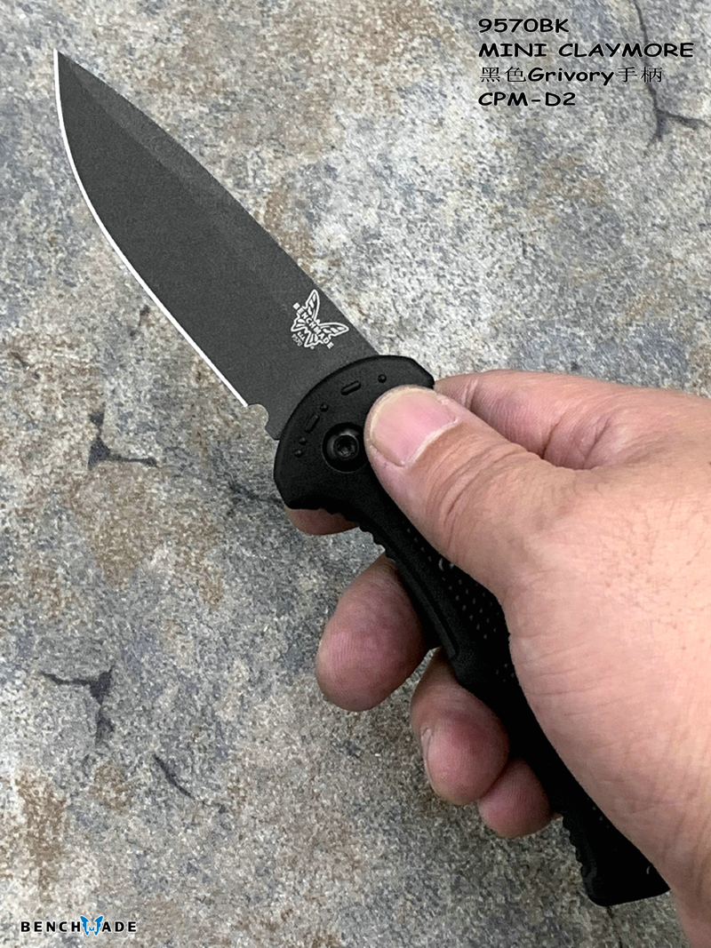 Benchmade 蝴蝶 9570BK MINI CLAYMORE 黑色Grivory手柄 CPM-D2钴黑刃全刃迷你战术侧跳(现货)