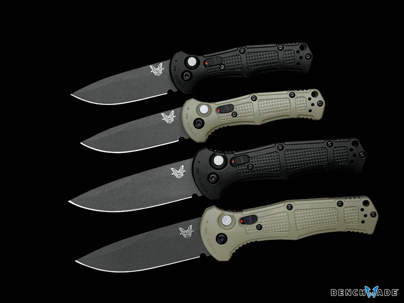 Benchmade 蝴蝶 9570BK-1 MINI CLAYMORE 游骑兵绿色Grivory手柄 CPM-D2钴黑刃全刃迷你战术侧跳(现货)